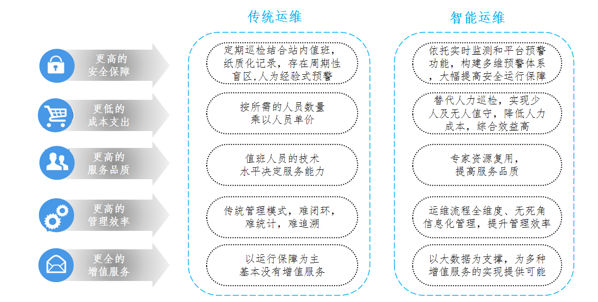 “智能運(yùn)維”也叫“智能電力運(yùn)維服務(wù)”,是傳統(tǒng)電力運(yùn)維結(jié)合“互聯(lián)網(wǎng)+”技術(shù)以及共享思維而產(chǎn)生的新型電力管理模式,通過線上平臺(tái)+線下運(yùn)維團(tuán)隊(duì)+APP,構(gòu)建新的運(yùn)維服務(wù)支撐體系,有效提升變電站運(yùn)行的安全、效率和經(jīng)濟(jì)性。