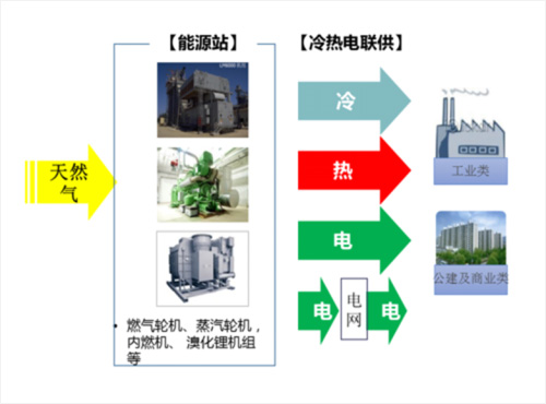 | 基本應(yīng)用 冷熱電三聯(lián)供是分布式能源的一種,具有節(jié)約能源、改善環(huán)境,增加電力供應(yīng)等 綜合效益,是城市治理大氣污染和提高能源綜合利用率的必要手段之一,符合國(guó) 家可持續(xù)發(fā)展戰(zhàn)略。主要為大型商場(chǎng)、酒店、學(xué)校、寫字樓及住宅供冷及供熱。 | 基本原理 以天然氣為主要燃料帶動(dòng)發(fā)電機(jī)運(yùn)行,產(chǎn)生的電力供應(yīng)用戶的電力需求,系統(tǒng)發(fā) 電后排出的余熱通過(guò)余熱回收利用設(shè)備(余熱鍋爐或者余熱直燃機(jī)等)向用戶供熱、 供冷。達(dá)到冷-熱-電需求的一個(gè)能源供應(yīng)系統(tǒng),三聯(lián)供使得燃?xì)獾臒崮鼙怀浞掷?/span> 用,大大提高了能源的綜合利用功效。